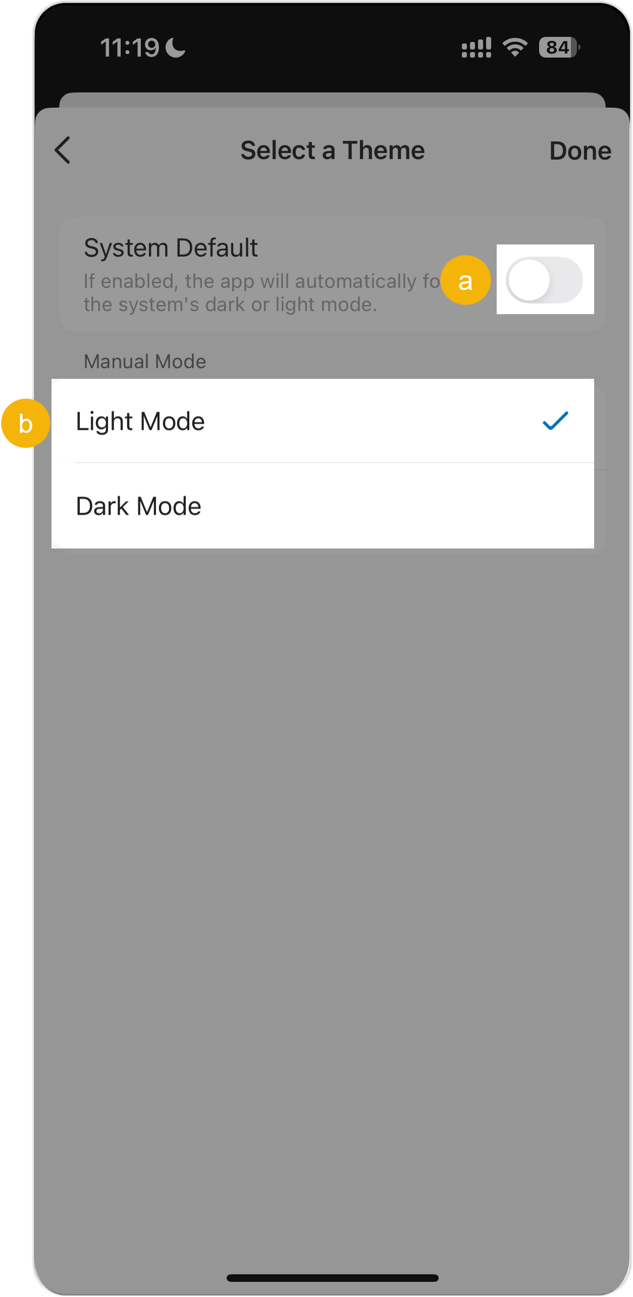 By default, Linkus automatically adapts to your phone's system theme, switching between light and dark modes accordingly. In case of need, you can set Linkus to always use either light or dark mode, regardless of your device's settings.