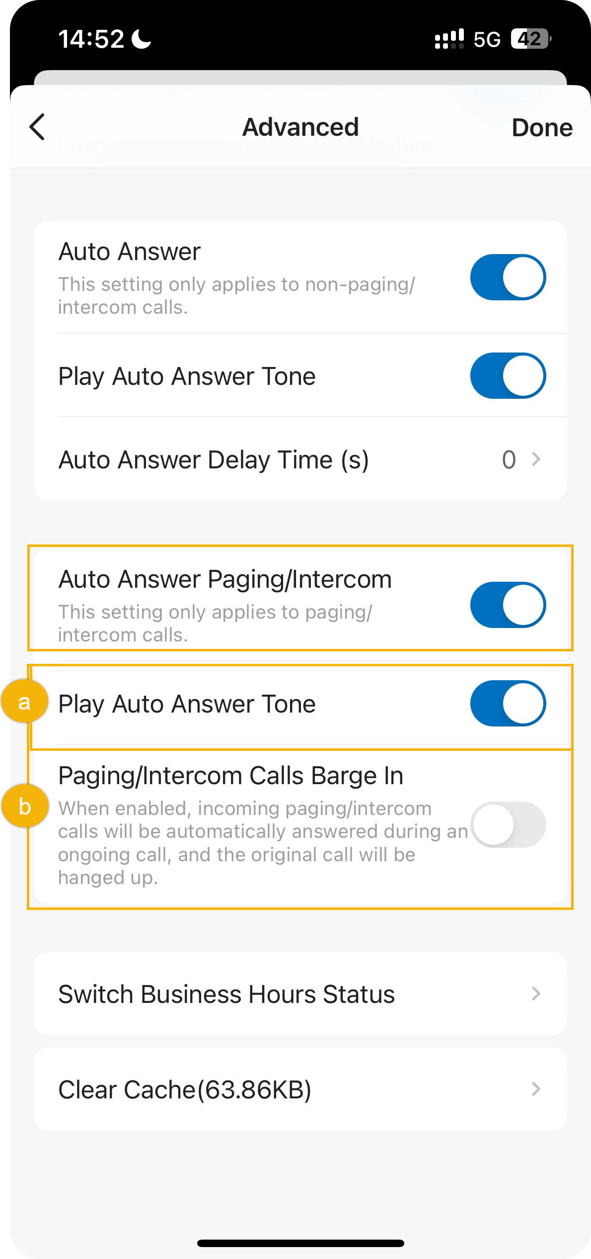 - Turn on the switch of Auto Answer Paging/Intercom, then