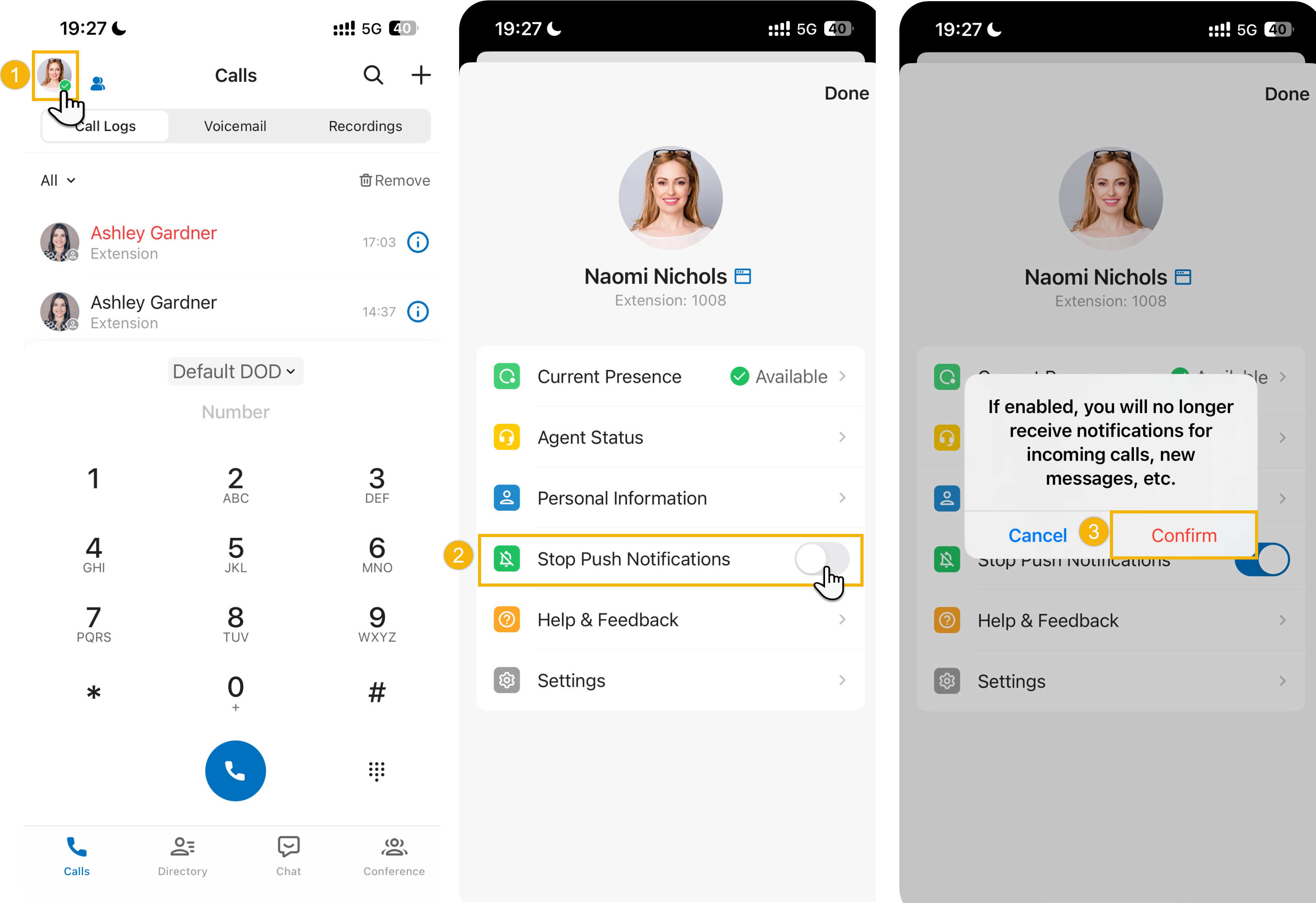 This topic describes how to enable or disable notifications for incoming calls, new messages, etc. when Linkus is running in the background on mobile phone.