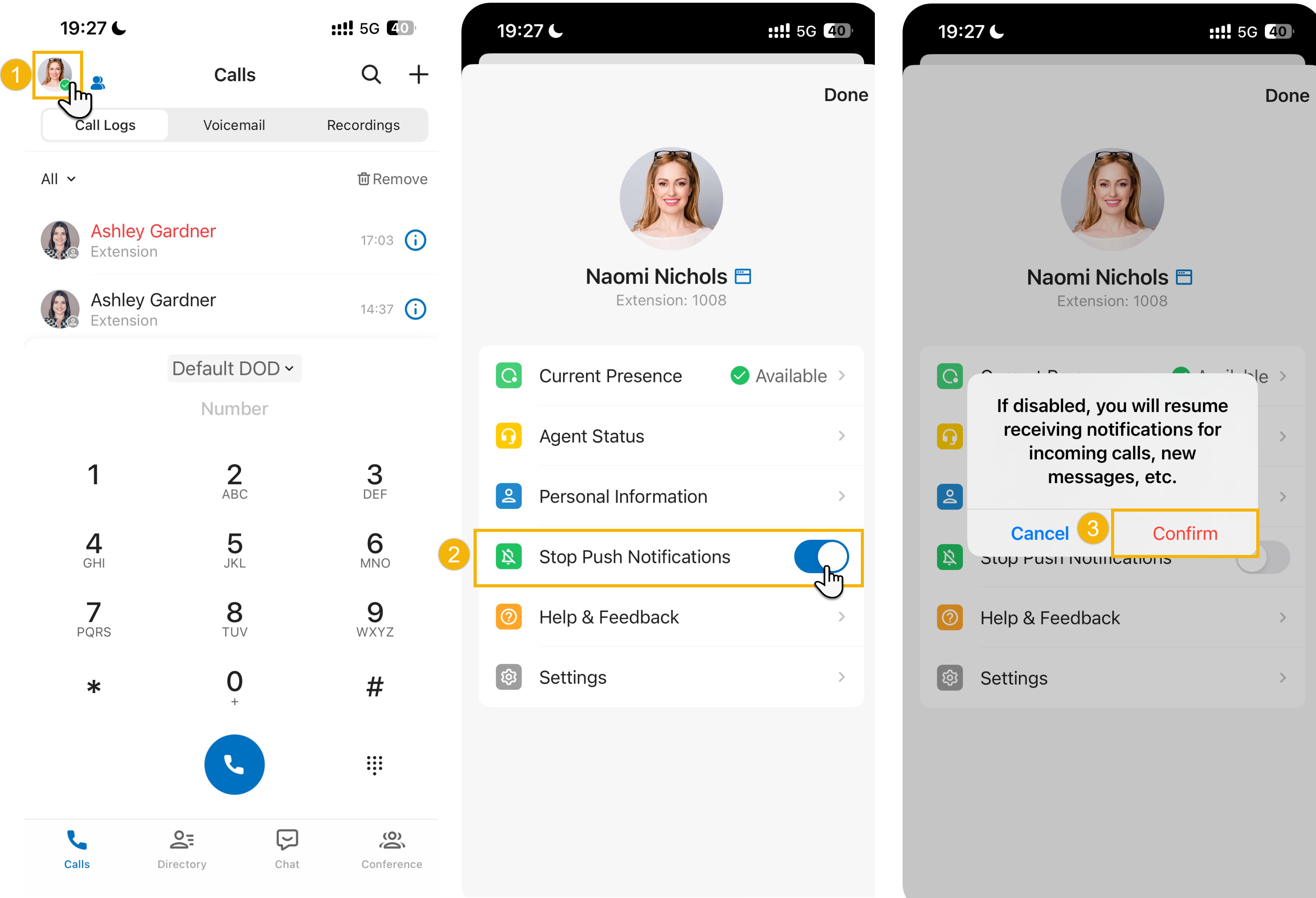With push notifications disabled, if your extension receives new messages (e.g. incoming calls, new messages, etc.) while Linkus is running in the background on your mobile phone, Linkus will not be woken up and you will not receive notifications.