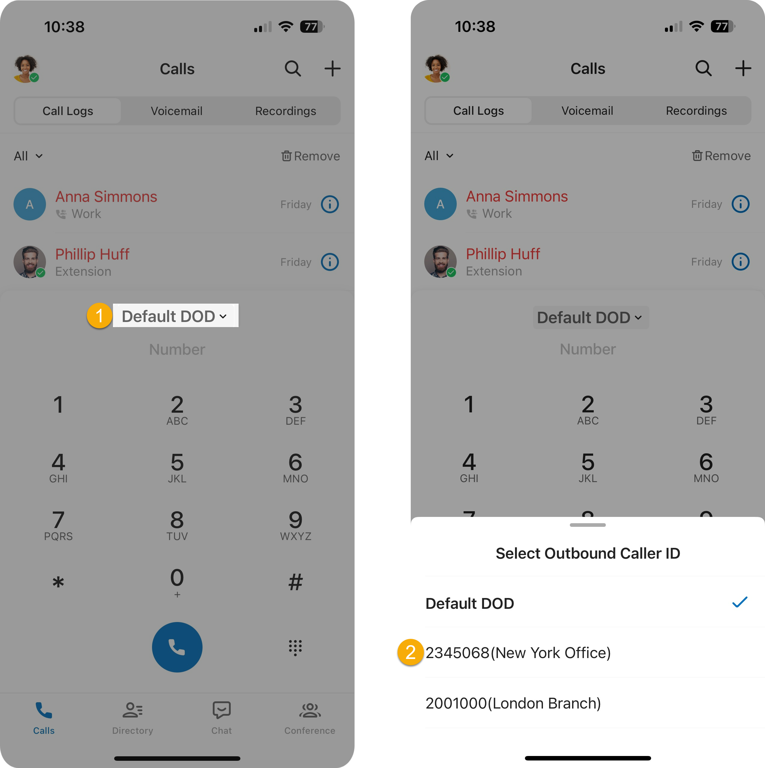 Before making outbound calls from Linkus, you can select which outbound caller ID (DOD) to display. You can use the same DOD number for all outbound calls or select a specific DOD for each call.
