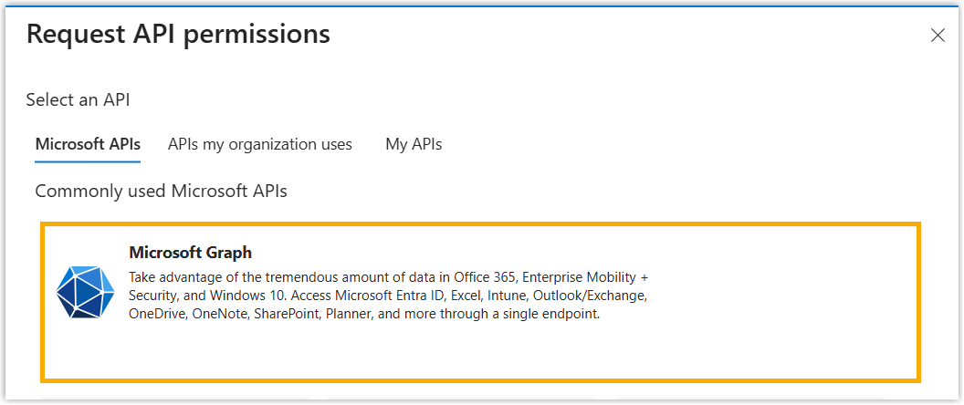 - In the Select an API page, go to Microsoft APIs > Microsoft Graph.