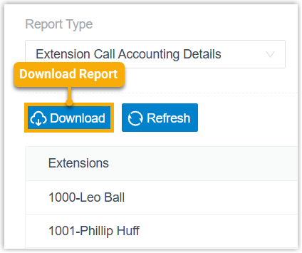 - In the Report Type drop-down list, select Extension Call Accounting Details.