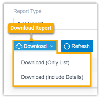 - Download (Include Details): Download the IVR key data displayed in the list, and detailed information about the associated IVR calls.