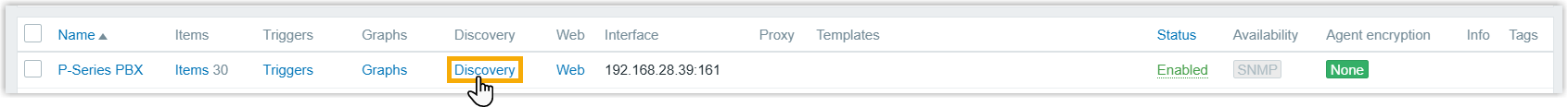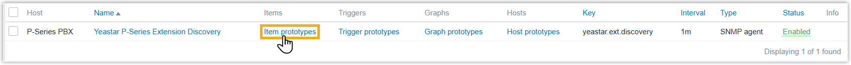 Yeastar P-Series Extension Discovery.Type Select SNMP agent. Key Enter a unique key for the discovery rule.