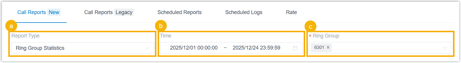 Ring Group Statistics report allows you to query the number of received and answered calls for a specific ring group, thus helping you evaluate performance of members within the ring group. This topic describes how to access the report and explains the key metrics in detail.