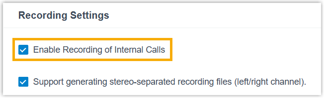 2. Optional: In the Recording Settings section, select the checkbox of Enable Recording of Internal Calls to automatically record the internal calls.