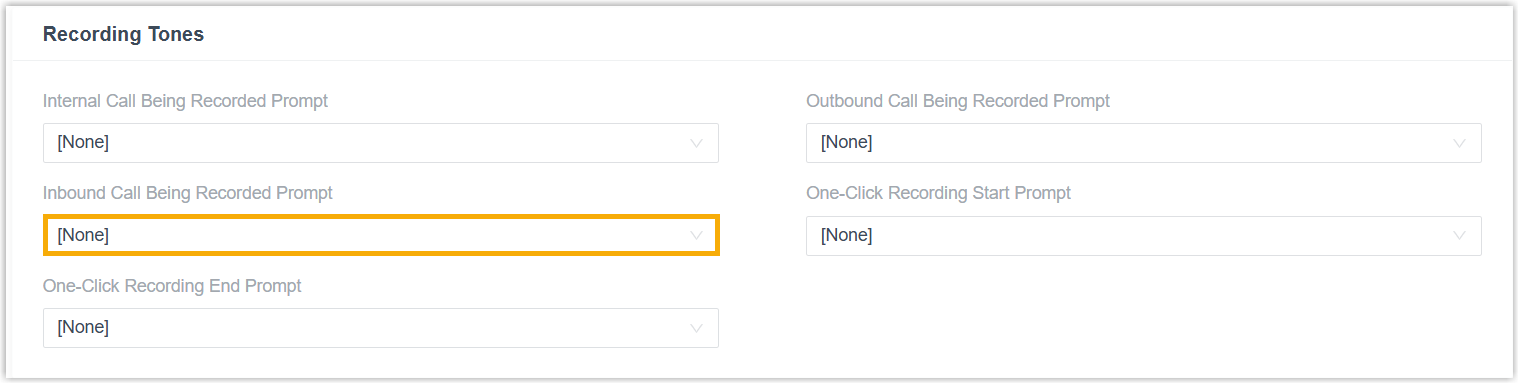 If recording is enabled for specific objects (e.g. extension or trunk), you can configure a dedicated prompt for inbound calls to notify both caller and callee that the call is being recorded. When an inbound call to these objects is answered, the system plays the prompt and starts recording.