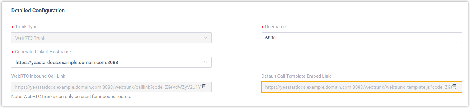 beside the WebRTC trunk. - In the Detailed Configuration section, copy the