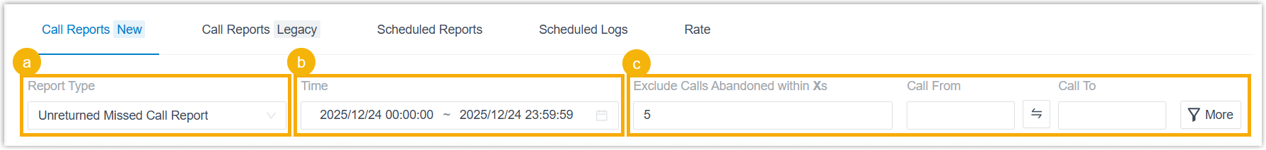- In the Report Type drop-down list, select Unreturned Missed Call Report.