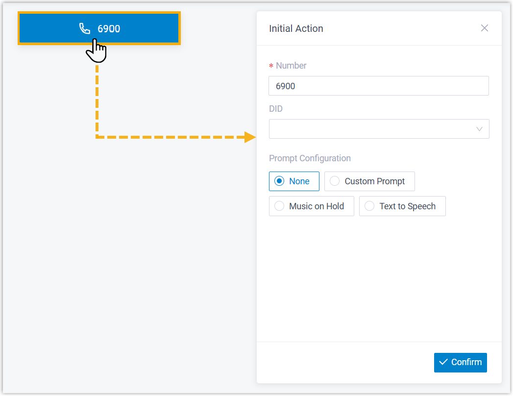 Initial Action component is the entry point of a call flow. It allows you to specify the phone number(s) that callers can dial to initiate the flow, and optionally configure an audio prompt to welcome callers or provide instructions for them.