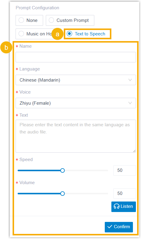Note: The new speech will be saved to the system and synchronized to PBX Settings > Voice Prompt > Custom Prompt.
