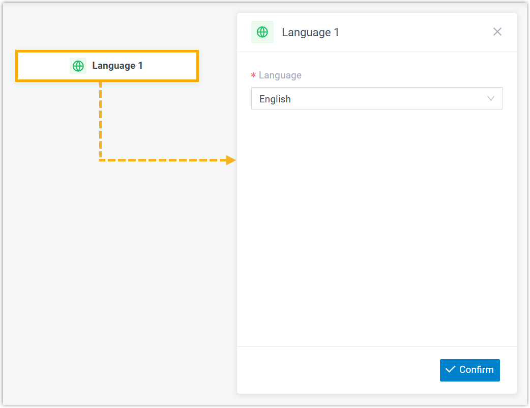 1. After adding Language component to a call flow, click Language component to proceed with the configuration.