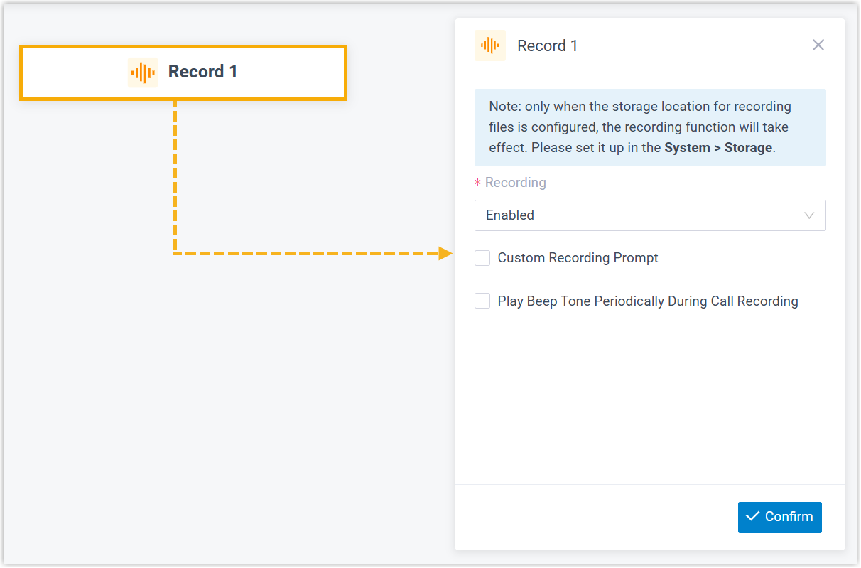 1. After adding Record component to a call flow, click Record component to proceed with the configuration.