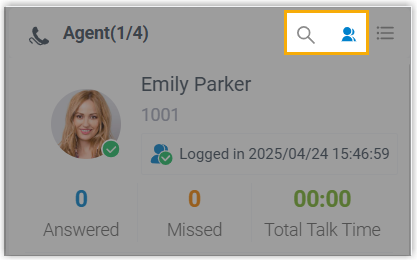 You can check the agent details in the queue(s), including the agent's presence, queue status, and the agent's queue call statistics.