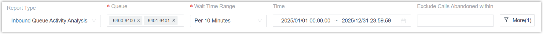 | Wait Time Range | The interval for waiting time that callers waited in the queue before connecting to an agent. |