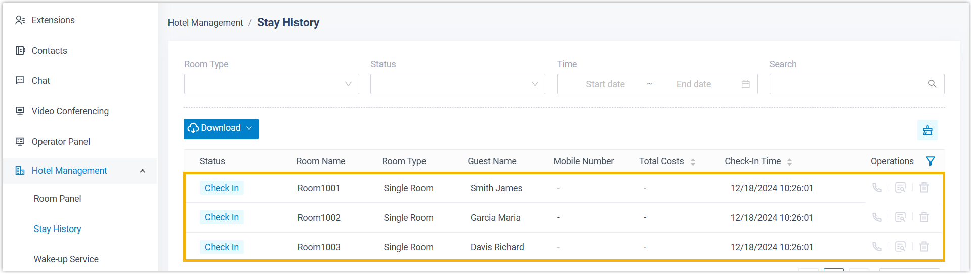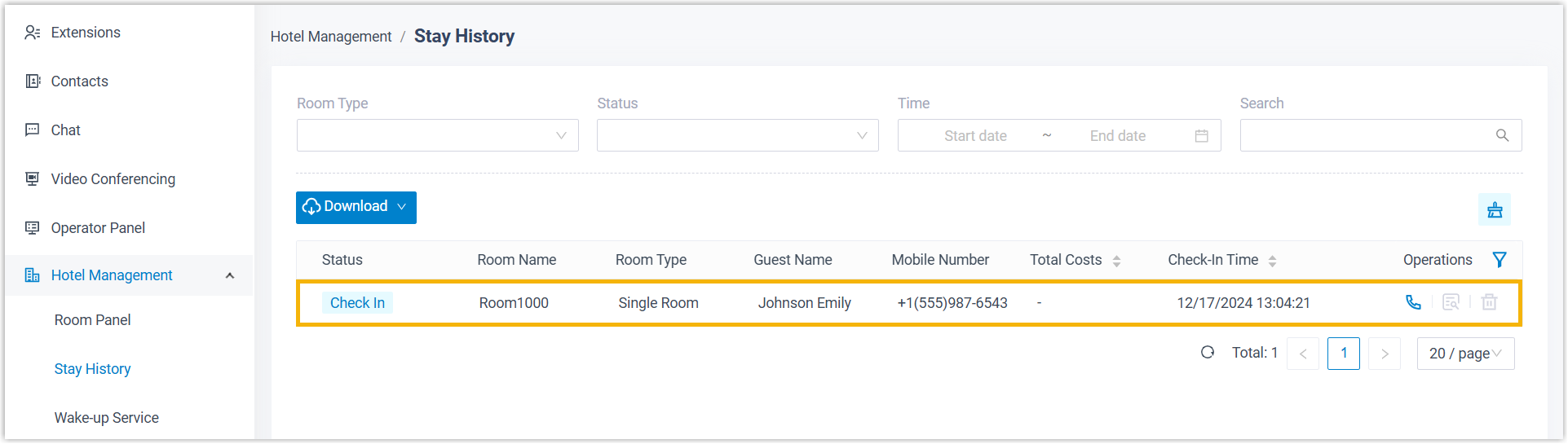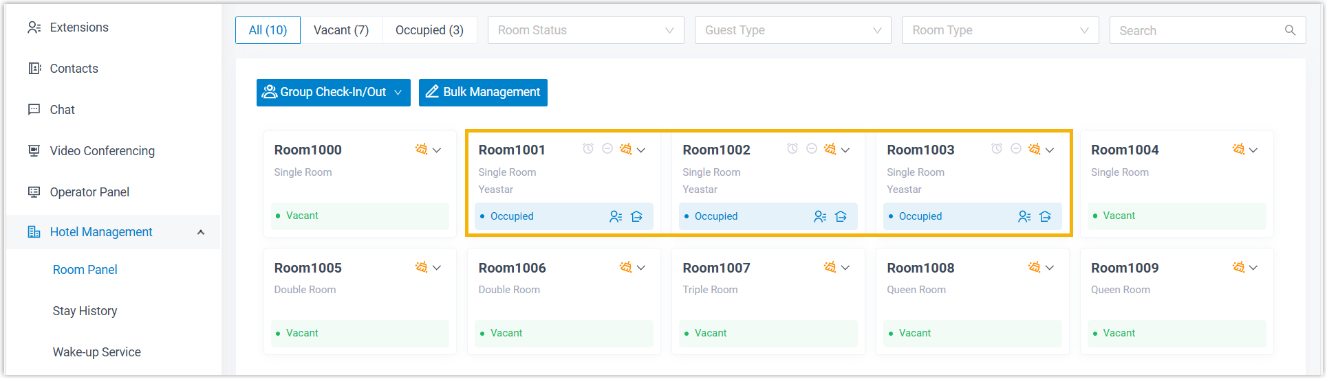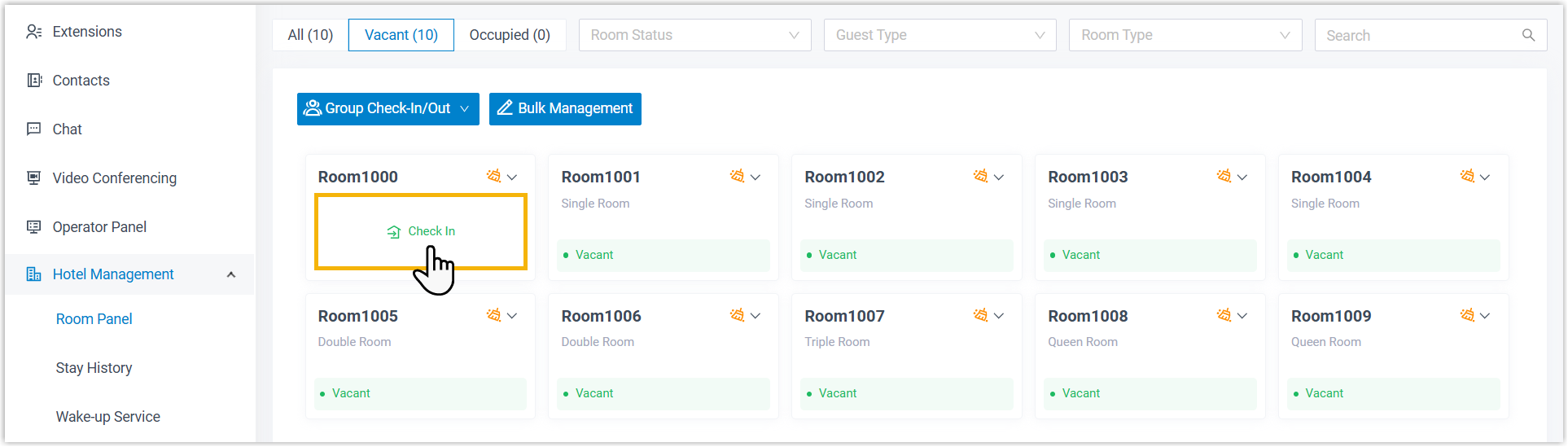 When guests arrive at the hotel, the front desk can complete the check-in process for them on Linkus Desktop/Web Client.