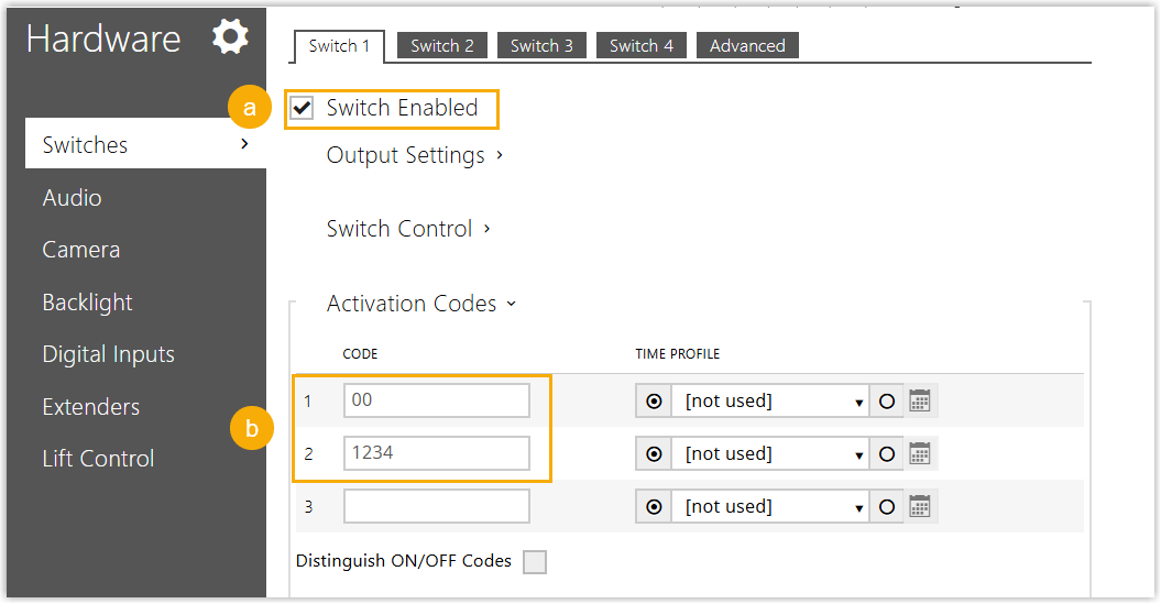 When the door is unlocked using the code configured in the Switch 1 tab, the intercom will play the assigned audio prompt.