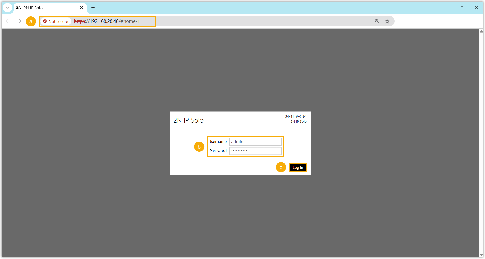 - In the browser's address bar, enter the IP address of the 2N IP intercom.