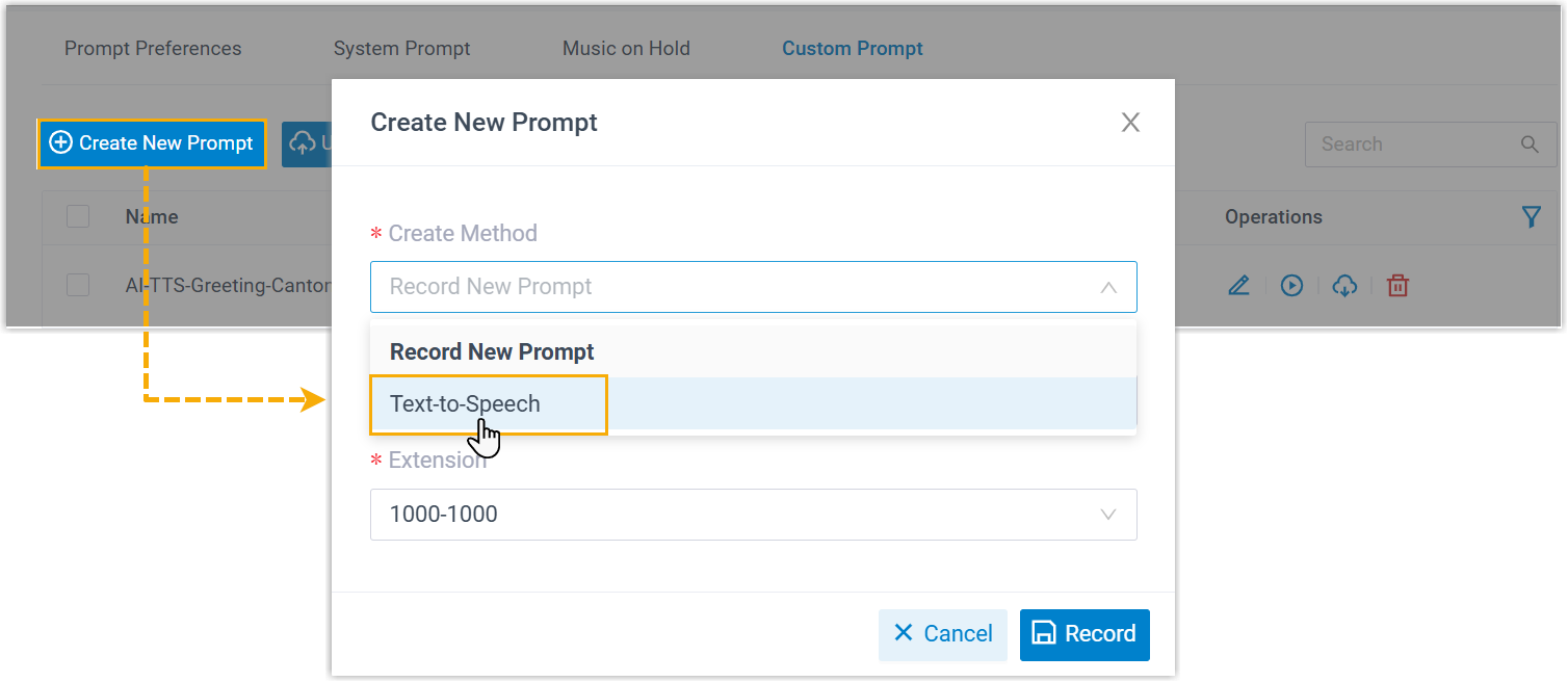 user can also customize the Text-to-Speech prompt directly