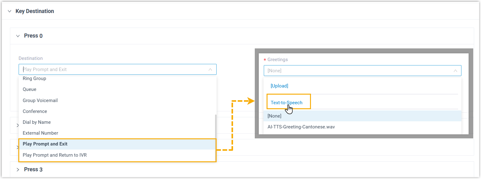 | Set prompts for IVR keypress destinations (Path: ). | ![]() |