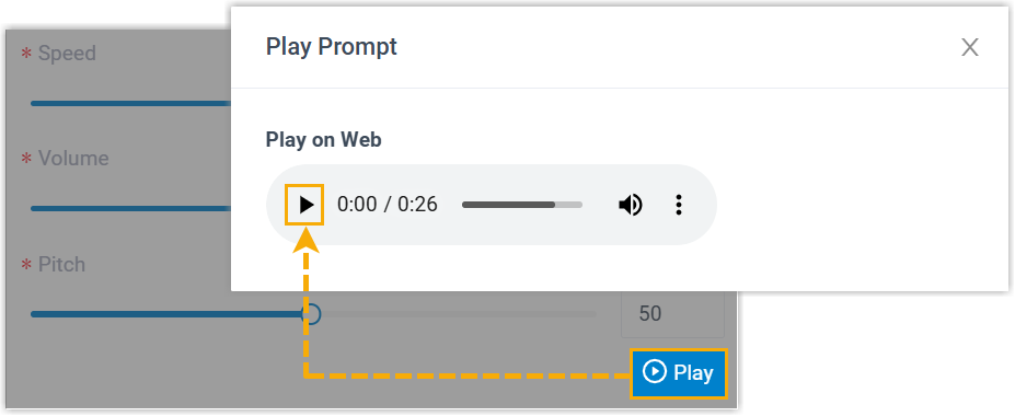 The button displays Generating, and then change to Play after the audio prompt is successfully generated.