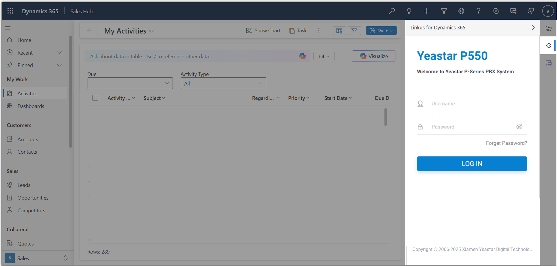 - System administrator has completed the integration of Yeastar P-Series PBX System and Microsoft Dynamics 365.