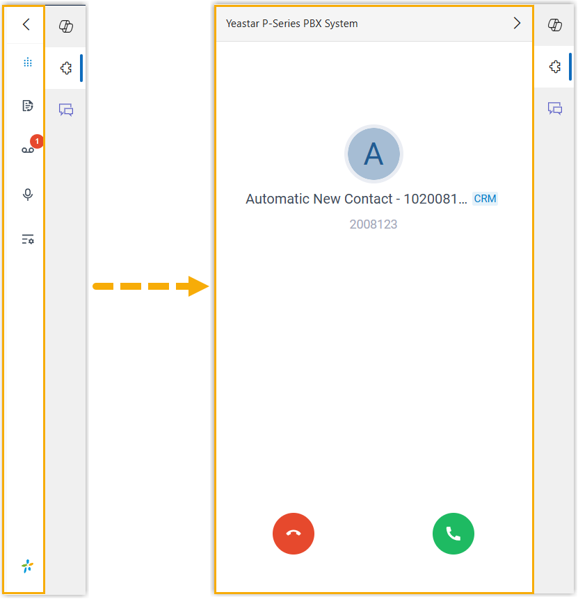 When an incoming call is received while the plugin is collapsed, it will automatically expand to notify you of the call.