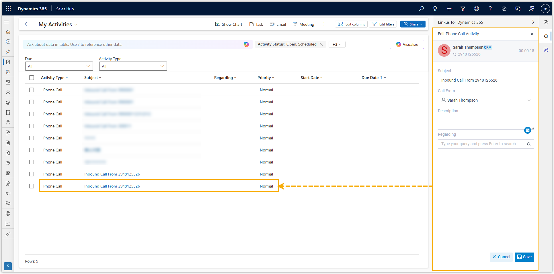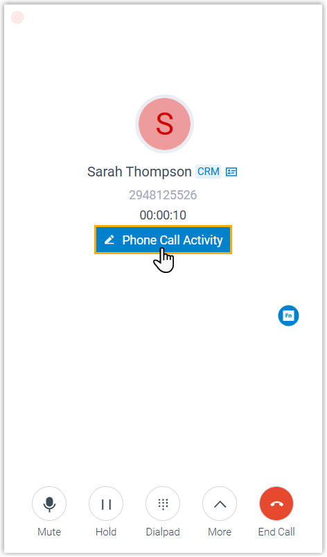 - If phone call activity auto creation is enabled, a record is automatically created in Dynamics 365 when the call is answered. You can update the details within the call window, and the changes will be synced to the phone call activity record.