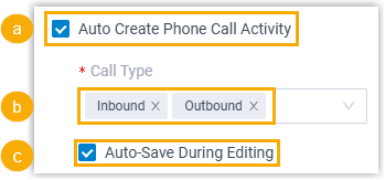 - Select the checkbox of Auto Create Phone Call Activity.