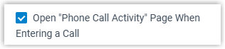 - If you prefer to manually create a phone call activity during an external call, unselect the checkbox of Auto Create Phone Call Activity.