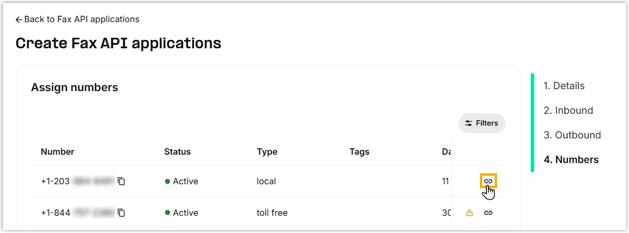 You will be redirected to the Manage Numbers page, where the purchased number is displayed.