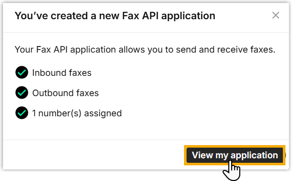 Setting Description Name Enter a name to help you identify the integration. Service Provider Select Telnyx. API Key Paste the API key obtained from Telnyx. Application ID Paste the application ID obtained from Telnyx. - Optional: To forward inbound faxes as email