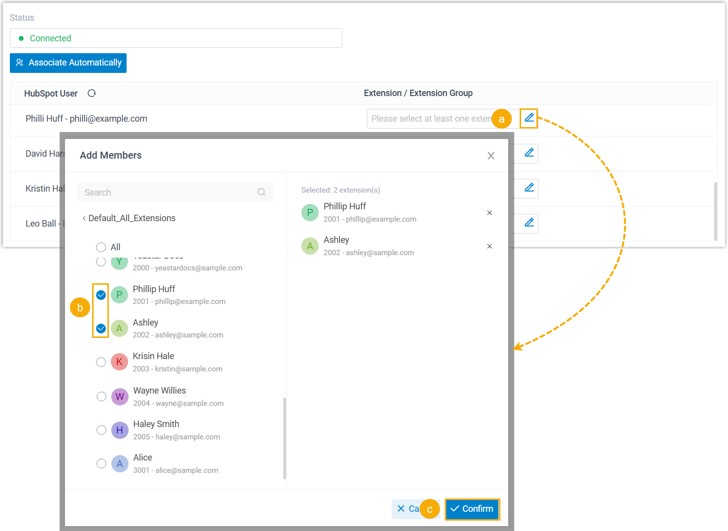 Step 2. Associate HubSpot CRM users with PBX extensions