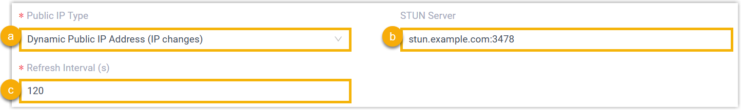 example.domain.com. - Refresh Interval (s): Leave the default setting or change the interval (in seconds) for PBX to request the external host for public IP.