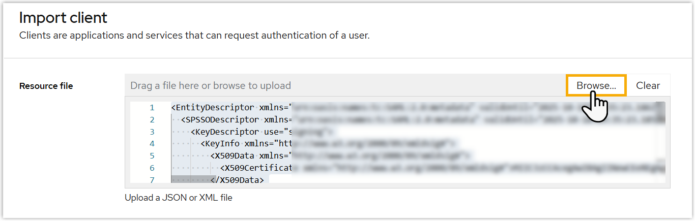- Import Red Hat SSO configurations via metadata XML file or metadata URL.
