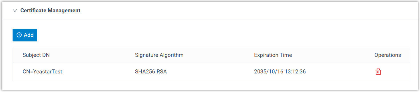 Note: Yeastar PBX supports a maximum of 5 certificates. Metadata with more than 5 certificates can NOT be imported into Yeastar PBX.