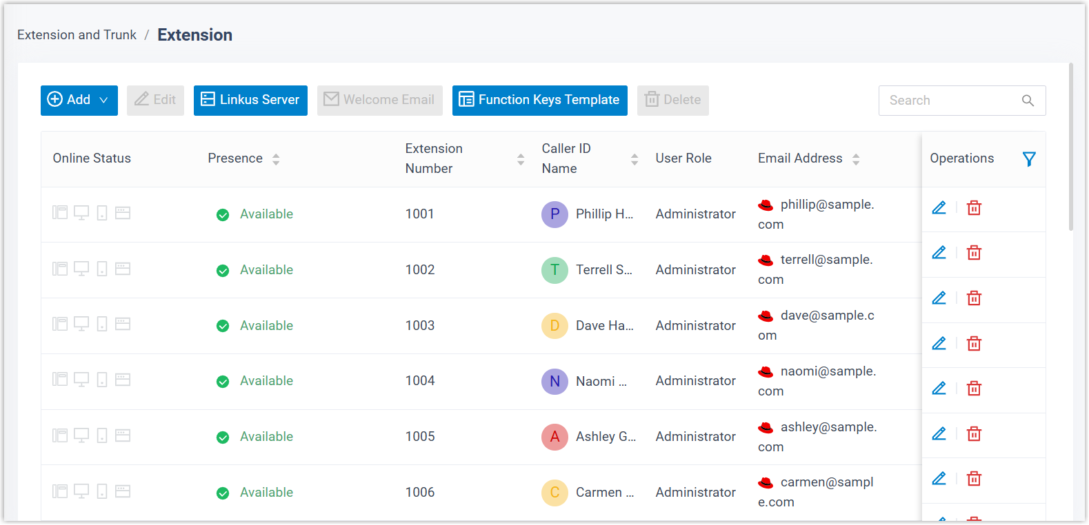 After integrating Yeastar P-Series PBX System with Red Hat SSO, you can synchronize Red Hat SSO users to Yeastar PBX and assign extensions to them, so that the users can use their office extensions for business communications with their Red Hat credentials.