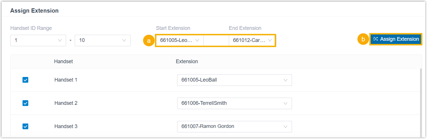 Handsets are automatically enabled and assigned with the specified extensions in sequence.