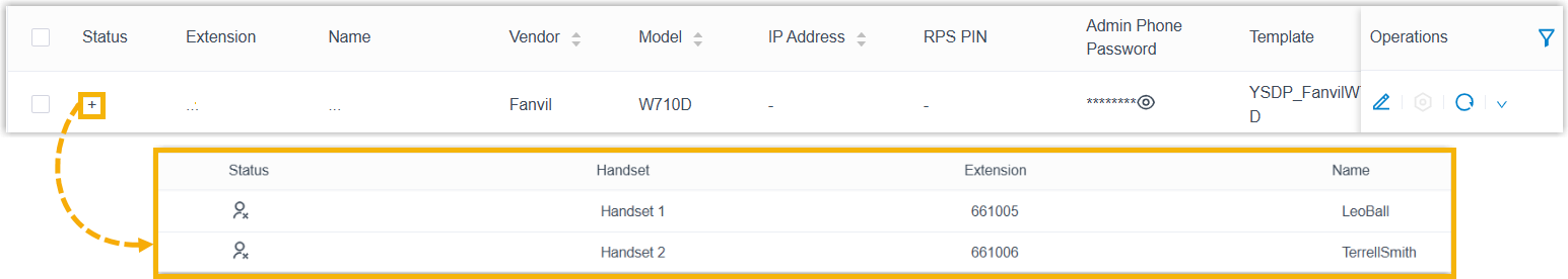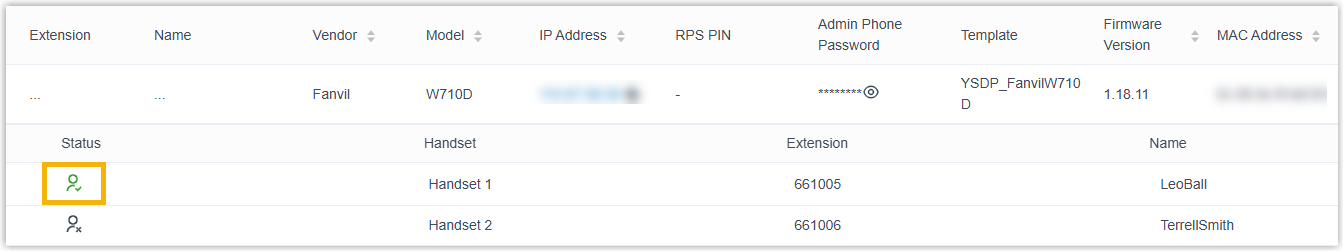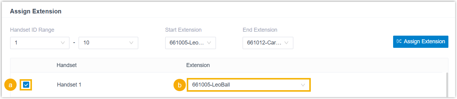 - Select the checkbox of the desired handset.