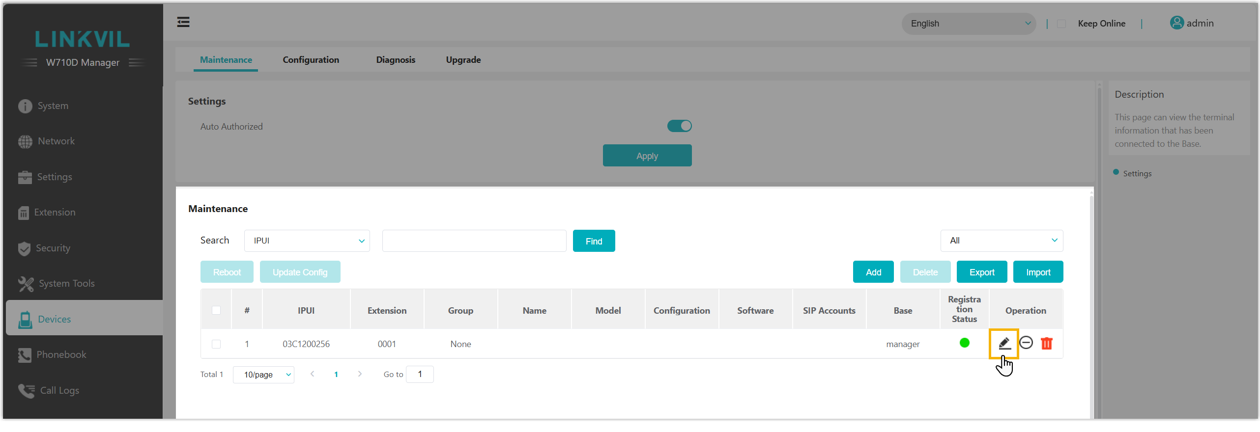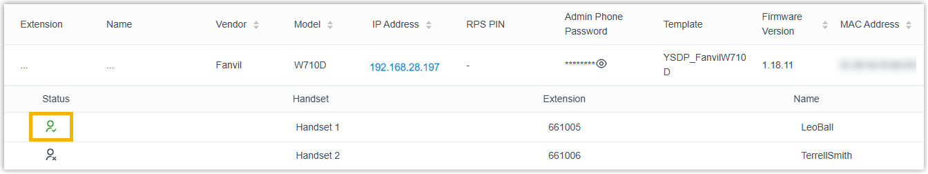 - On PBX web portal, you can check the registration status of