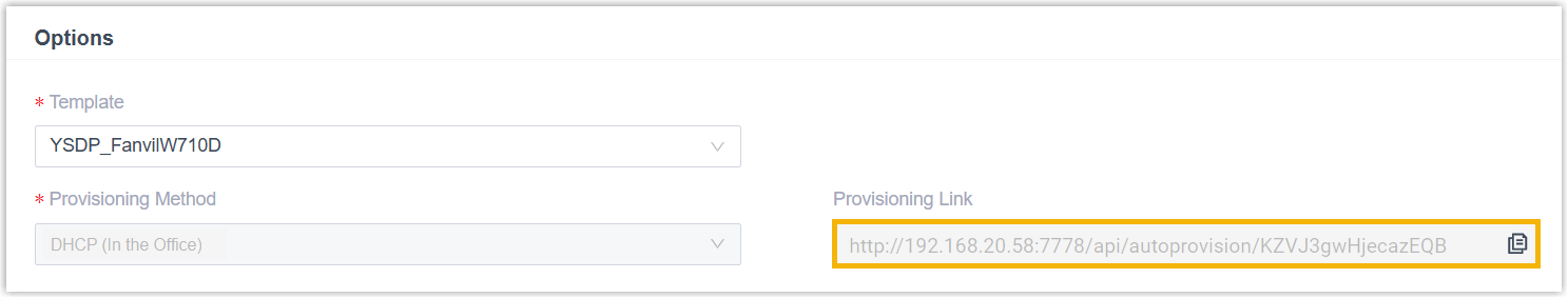 - Use the generated provisioning link to configure option 66 on the DHCP server in the subnet where the DECT system is deployed.