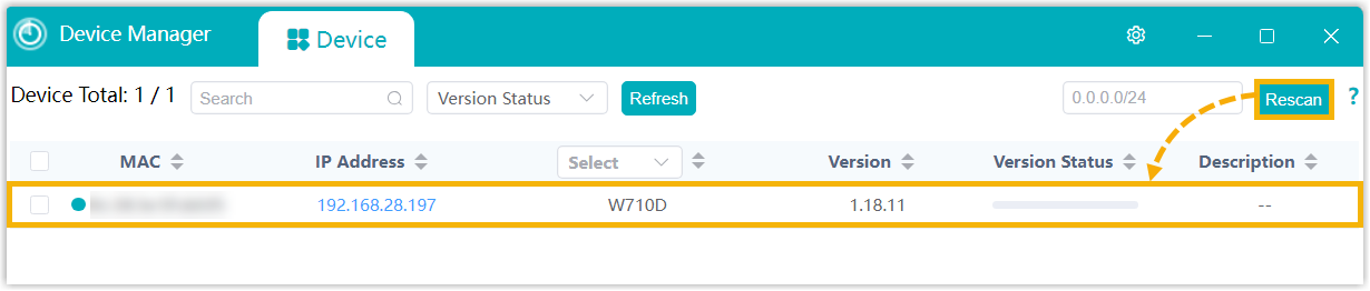 Open the Fanvil Device Manager (an IP scanning tool) and click Rescan.