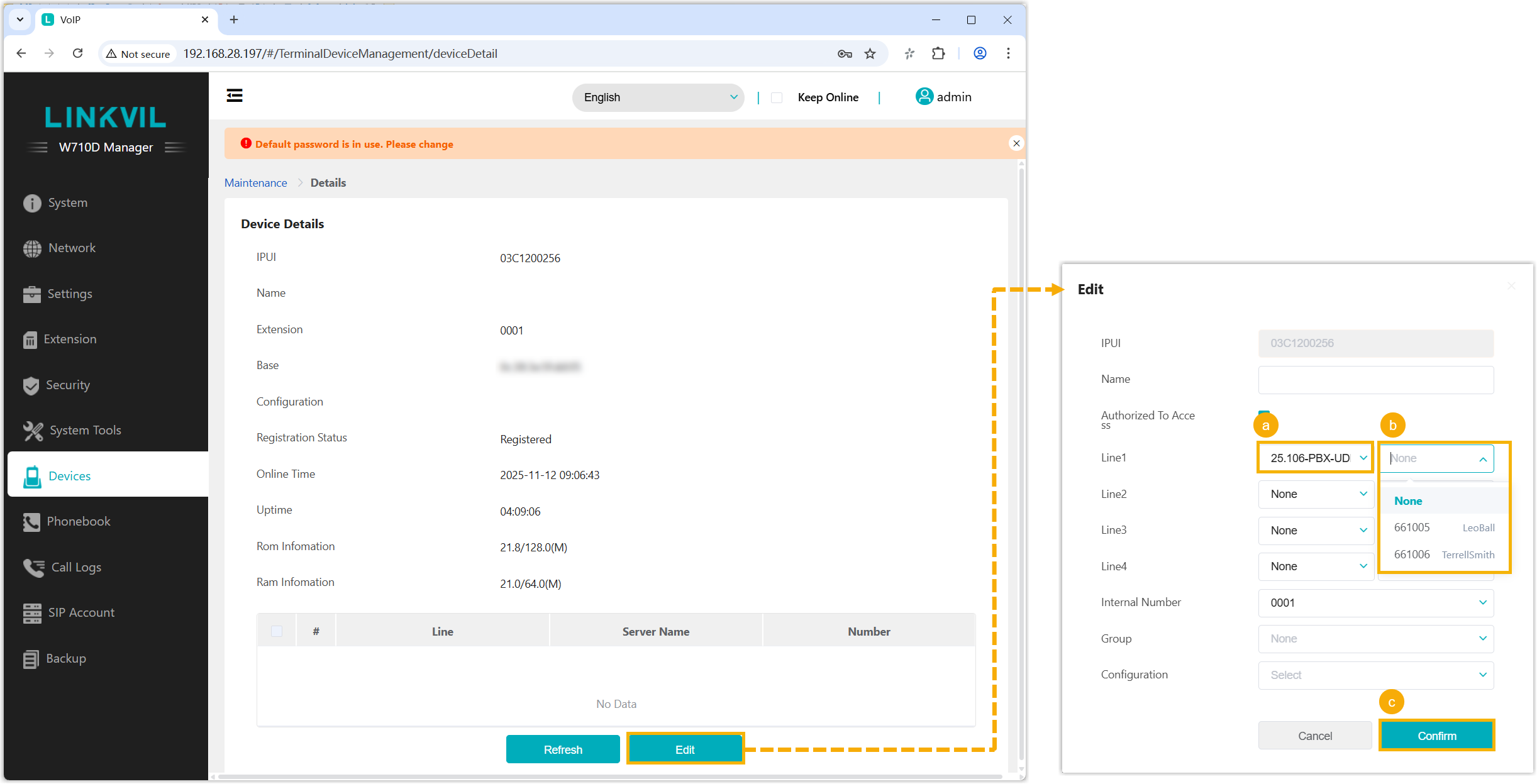 Note: If your desired extension is not listed in the drop-down list, it indicates that the extension has been associated with an IP phone or gateway.- To release the extension from the associated IP phone or gateway, see Release an Extension from a Provisioned IP Phone/Gateway.