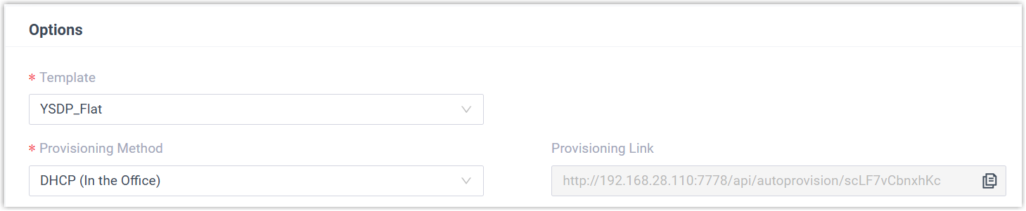 drop-down list.Note: You can select the default template corresponding to the phone model, or customize your own template. For more information, see Create a Custom Auto Provisioning Template.