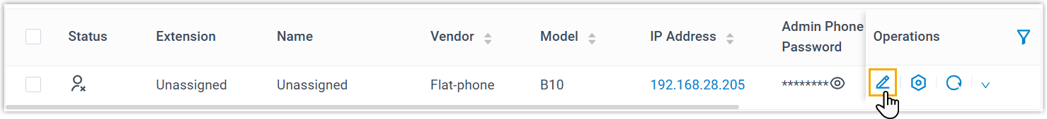 The IP phones detected by the PBX via PnP are displayed in the phone list.