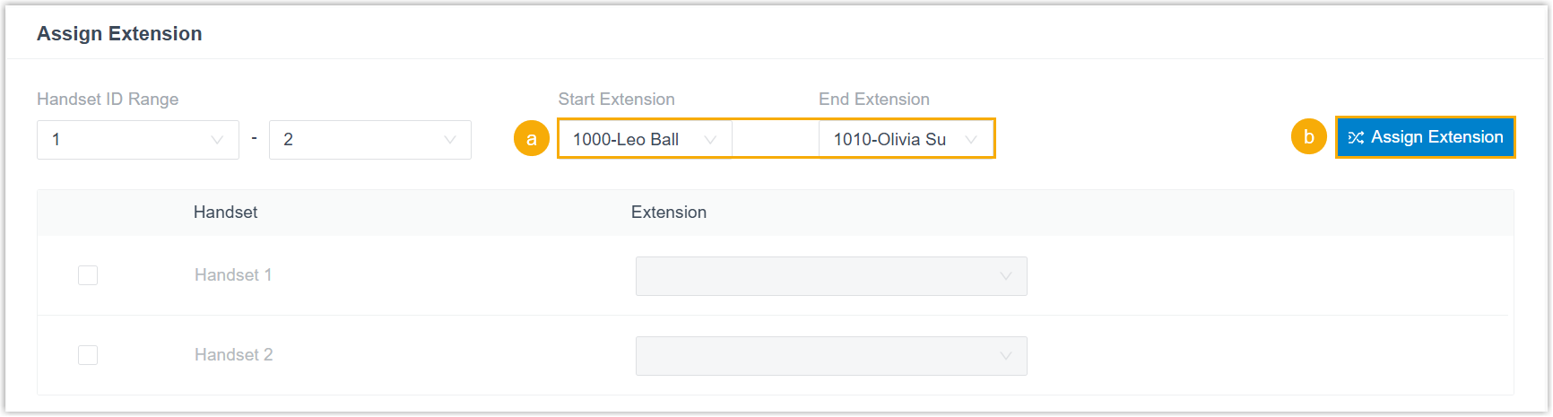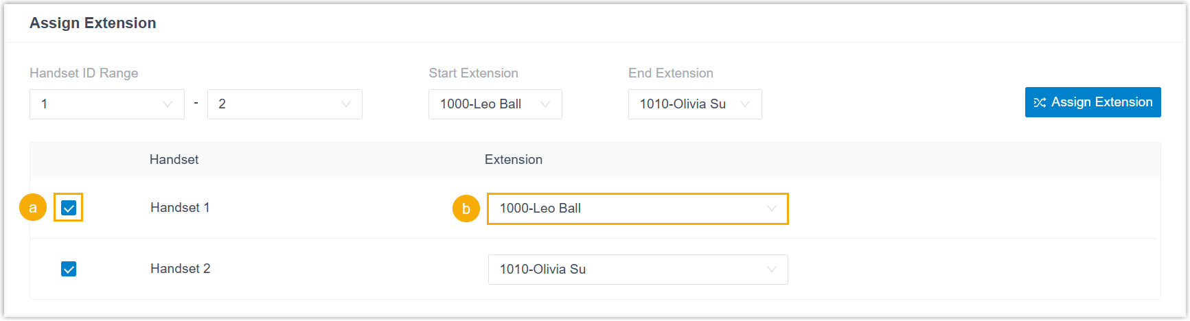 Handsets are automatically enabled and assigned with available extensions in sequence.