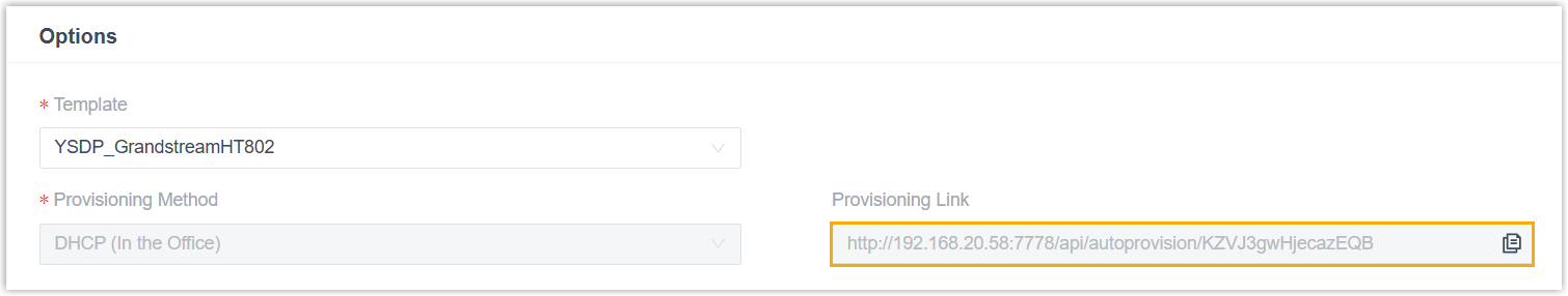 A provisioning link is automatically generated and displayed in the Provisioning Link field. This provisioning link points to the location where the gateway's configuration file is stored.
