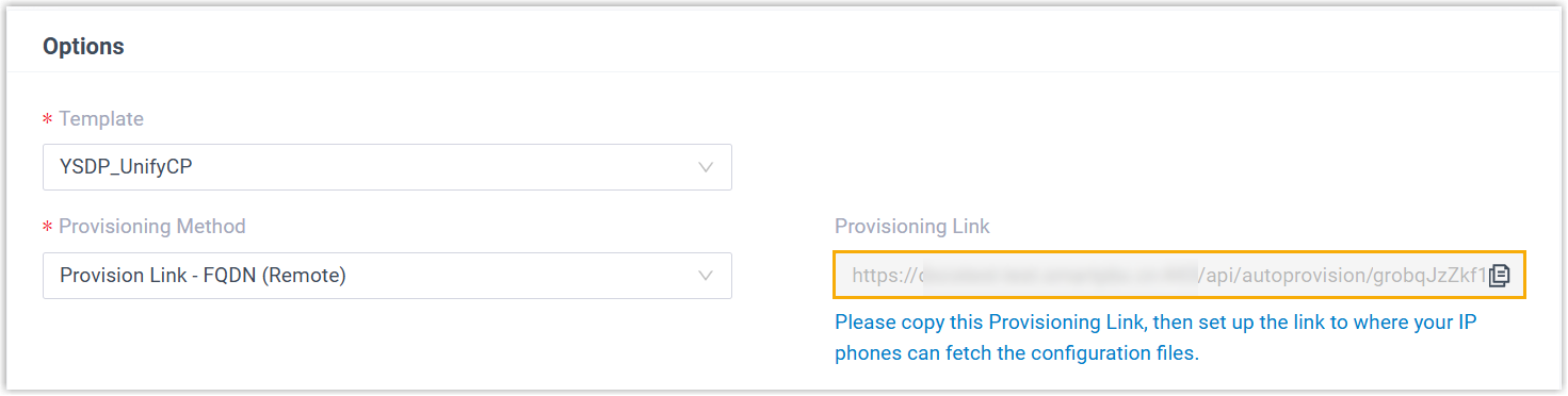 - On PBX web portal, copy the provisioning link from the phone's detail