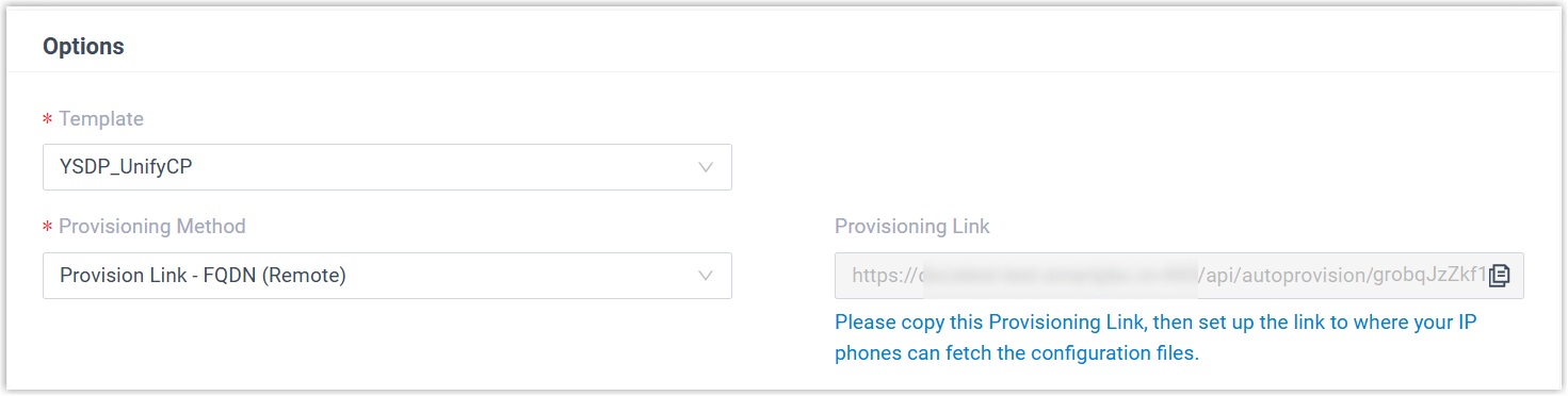 Link (Remote).The Provisioning Link field displays a provisioning link, which points to the location where the phone's configuration file is stored.Note: Note down the provisioning link, as you will need to use it later when configuring the DHCP server.